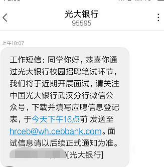 [湖北]2020光大銀行武漢分行校園招聘面試通知