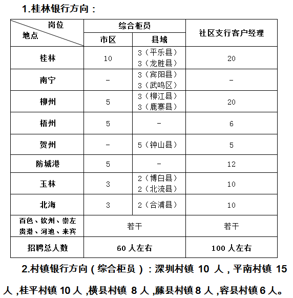 (三)招聘過程中的相關事宜以我行官方網站公告為準。如有疑問,請聯系:0773-3810800。