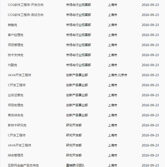 市場與行業拓展部、創新產品事業部、研究開發部、客戶支持服務部、咨詢與數據分析部、運營管理部、質量保障部、北京辦事處、財務部、人力資源部、辦公室、直銷銀行團隊、國際業務團隊