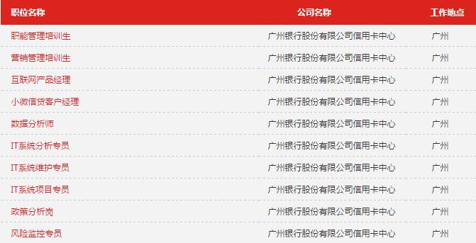 2017年廣州銀行信用卡中心春季校園招聘公告