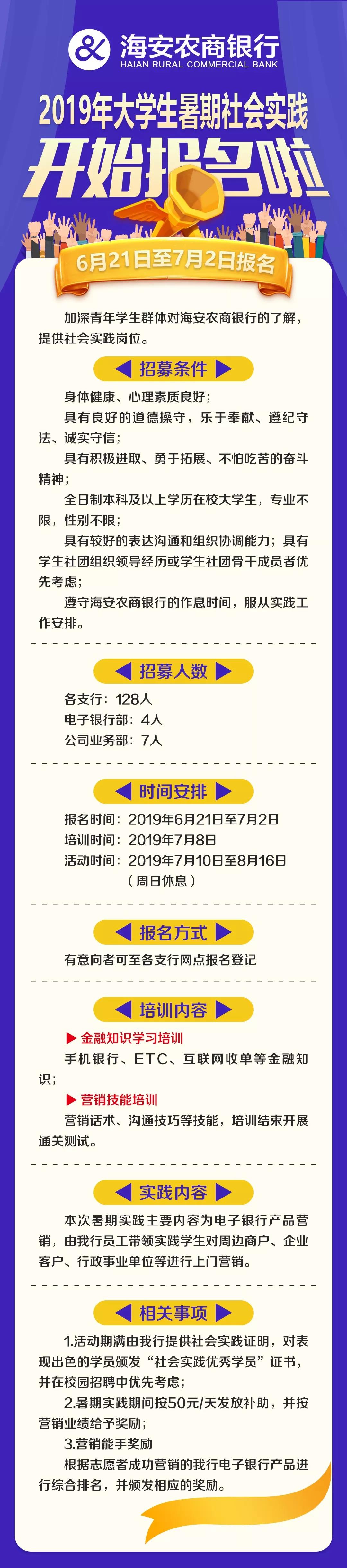 [江蘇]2019年海安農商銀行大學生暑期社會實踐公告