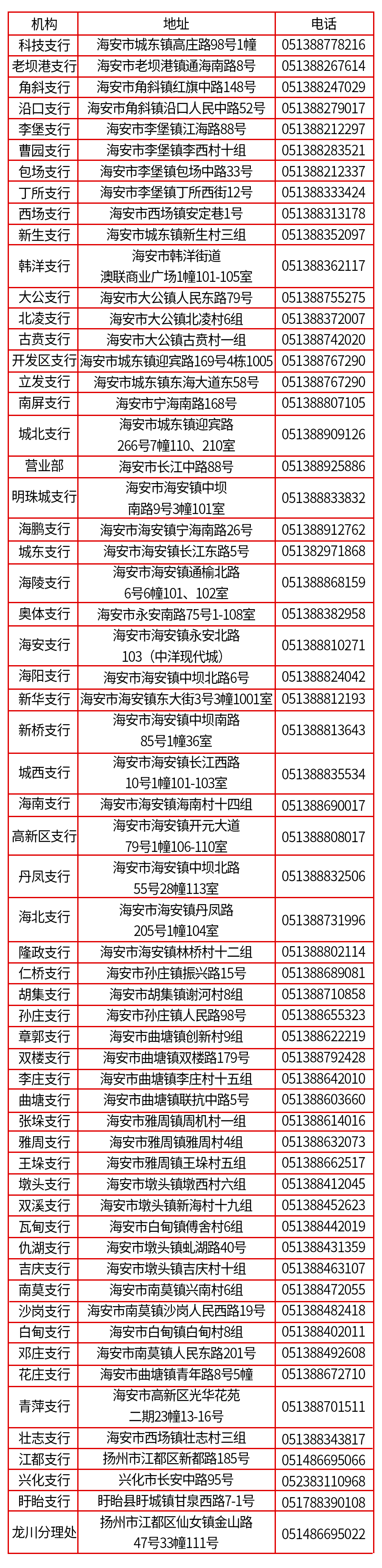 興化支行、興化昭陽分理外五個異地機構),是海安市營業網點最多、服務觸角最長、資產規模最大、經營實力最雄厚的本土銀行。作為農村金融機制改革的先行者與探索者,海安農商銀行一直走在全省農信改革發展前列。