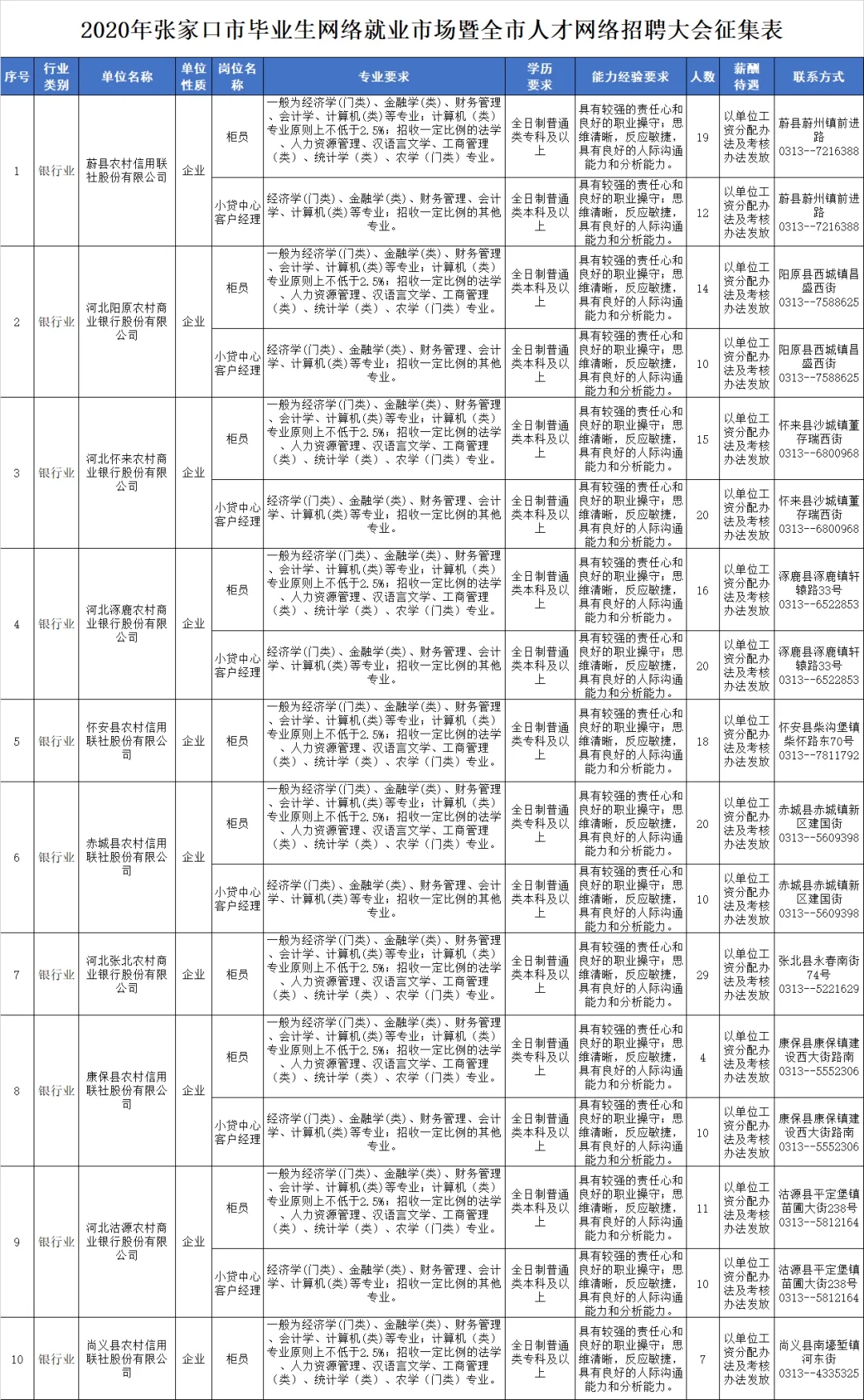 2020河北張家口農(nóng)信社招聘245人崗位預(yù)通知