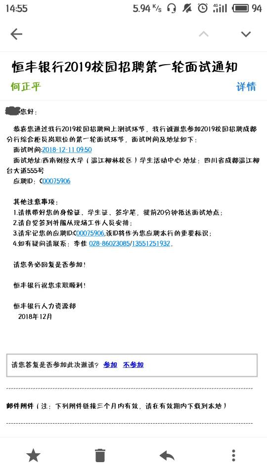 [全國]2019年恒豐銀行校園招聘第一輪面試通知