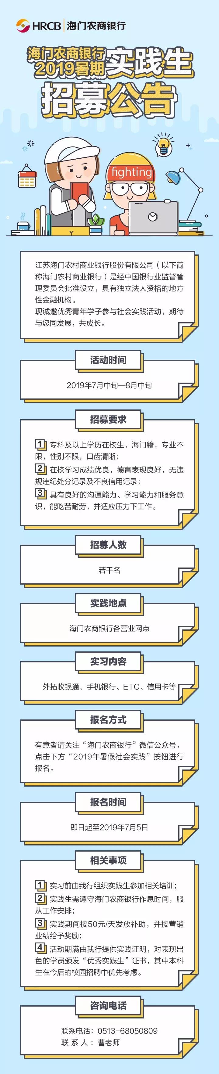 [江蘇]2019年海門農商銀行暑期實踐生招聘公告