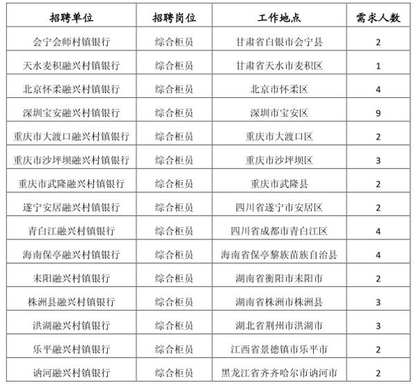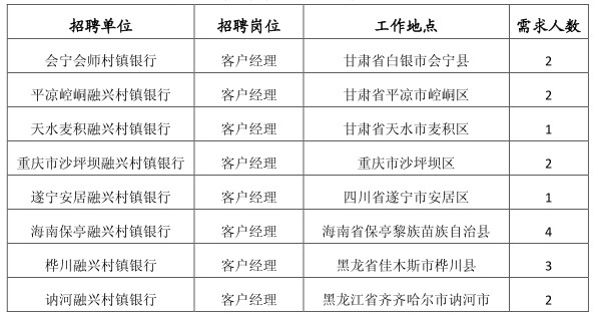 根據業務發展需要,哈爾濱銀行發起設立的部分融興村鎮銀行現面向國內高等院校誠聘英才,開展2019年春季校園招聘工作。詳細情況如下: