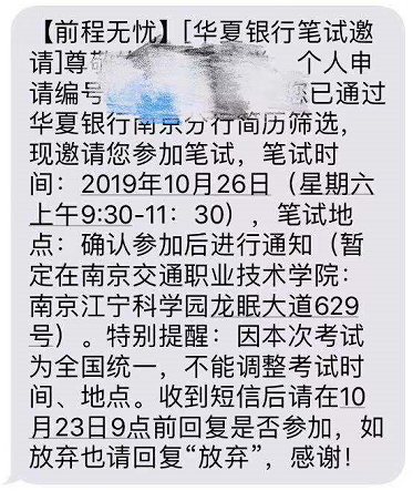 [江蘇]2020華夏銀行南京分行校園招聘筆試通知