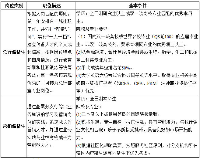 1、總行儲備生 15人