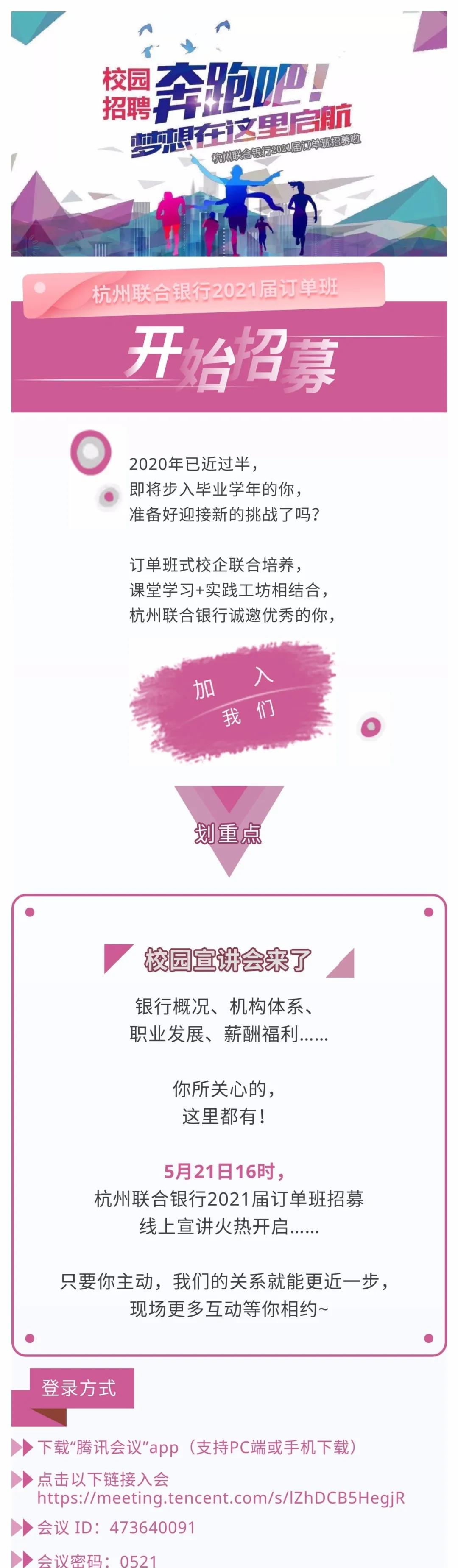 主頁 > 農村商業銀行招聘 > 杭州聯合銀行招聘 > 2021屆杭州聯合銀行訂單班招募宣講會
