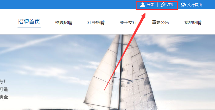 一、首先進(jìn)入交通銀行招聘官網(wǎng),點(diǎn)擊右上角登陸按鈕(沒有賬號自行注冊),參加過秋招的同學(xué)直接登陸原有的賬號就可以,忘記密碼可以找回。