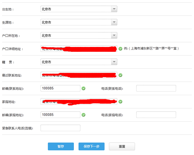四、接下來填寫戶籍等信息,其中容易不理解的有:生源地,即參加高考的地方;籍貫就是家庭所在地。