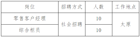 因業務發展和機構擴張需要,晉中銀行太原分行現公開招聘工作人員。我們誠邀有志于在金融領域實現自我價值的優秀人才加盟,加入晉中銀行,在發展的路上我們共同成長。