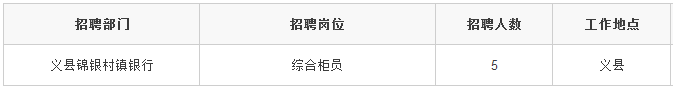 錦州銀行網站(www.jinzhoubank.com)“人才招聘”欄目,點擊進入“遼寧義縣錦銀村鎮銀行招聘啟事”,查看詳細招聘信息并在線投遞簡歷。