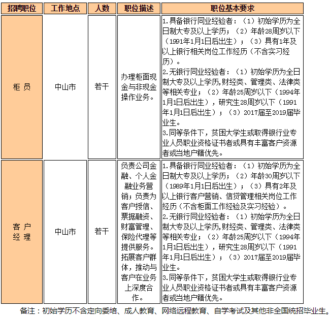 2.符合條件的應聘者將短信(系統短信通知平臺號碼為:95316、10690195316及指定合作的第三方機構短信平臺)或電話通知,應聘者在招聘期間請保持通訊暢通;如未收到相應通知者,即為未入闈,不另行通知。應聘人員資料及信息,中山小欖村鎮銀行將嚴格保密。