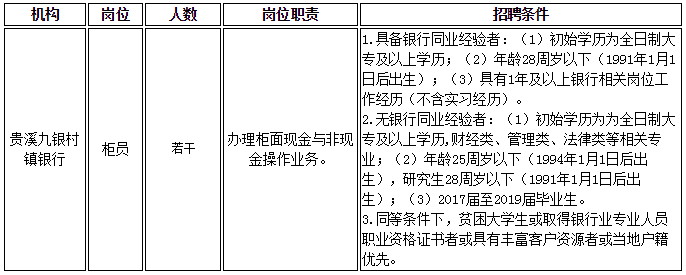 2019年貴溪九銀村鎮(zhèn)銀行社會(huì)招聘公告