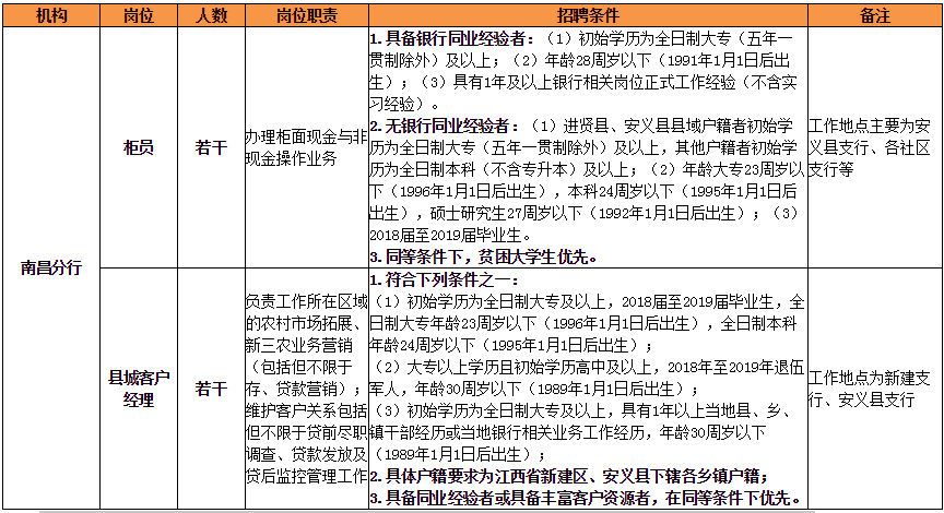 [江西]2019年九江銀行南昌分行社會招聘公告