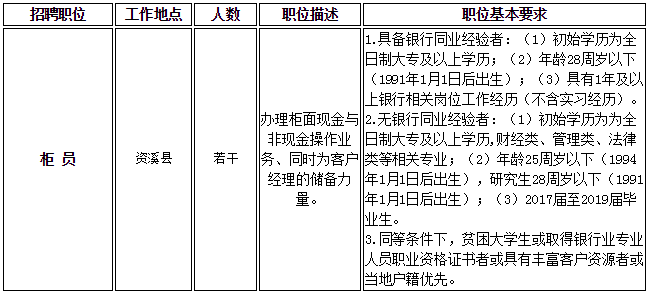 2.符合條件的應聘者將短信(系統短信通知平臺號碼為:95316、10690195316及指定合作的第三方機構短信平臺)或電話通知,應聘者在招聘期間請保持通訊暢通;如未收到相應通知者,即為未入闈,不另行通知。應聘人員資料及信息,資溪九銀村鎮銀行將嚴格保密。