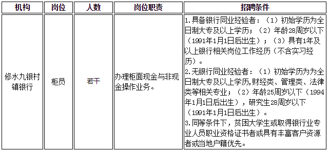 6.多次投報九江銀行、修水九銀村鎮銀行的簡歷將不再接收。
