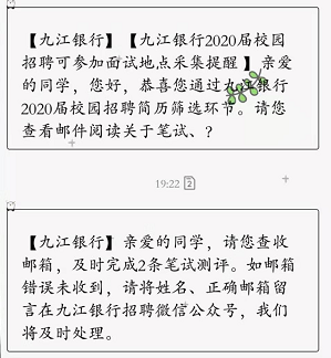 2020年九江銀行校園招聘筆試測評(píng)通知