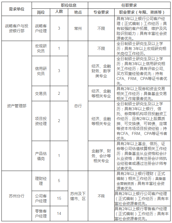 (四)同時需滿足崗位的任職要求(應聘者的工作年限、履職經歷、年齡等計算至2018年12月31日),且符合我行招聘錄用管理的其他相關政策及規定。