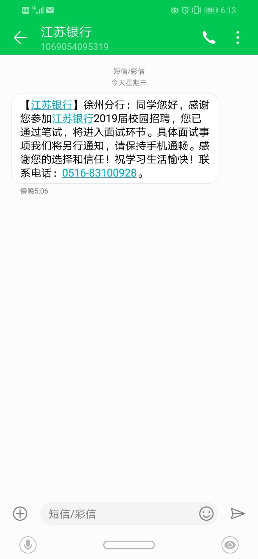 [江蘇]2019年江蘇銀行徐州分行校園招聘面試預通知