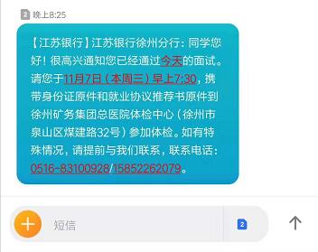 [江蘇]2019年江蘇銀行徐州分行校園招聘體檢通知