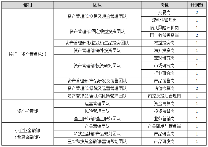 為滿足我行業務發展需要,并為專業人才提供施展才華的舞臺,現誠招有志之士加盟我行,具體招聘崗位及要求如下: