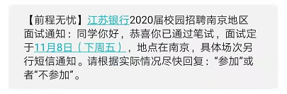 2020年江蘇銀行南京地區校園招聘面試通知公告