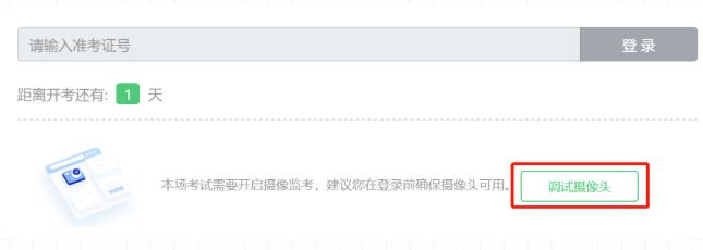 點擊“調試攝像頭”測試本機攝像頭是否可用,確認攝像頭可用即可登錄考試,拍照進入考試。