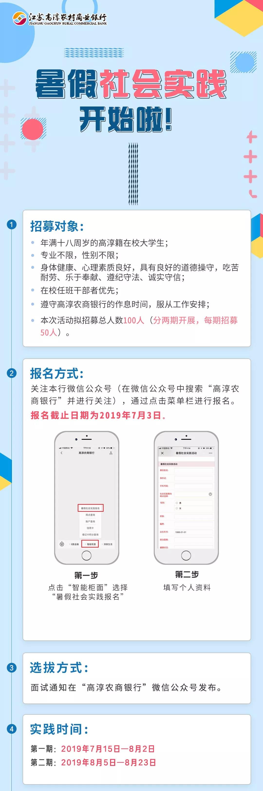 2019年高淳農商銀行大學生暑假社會實踐報名公告