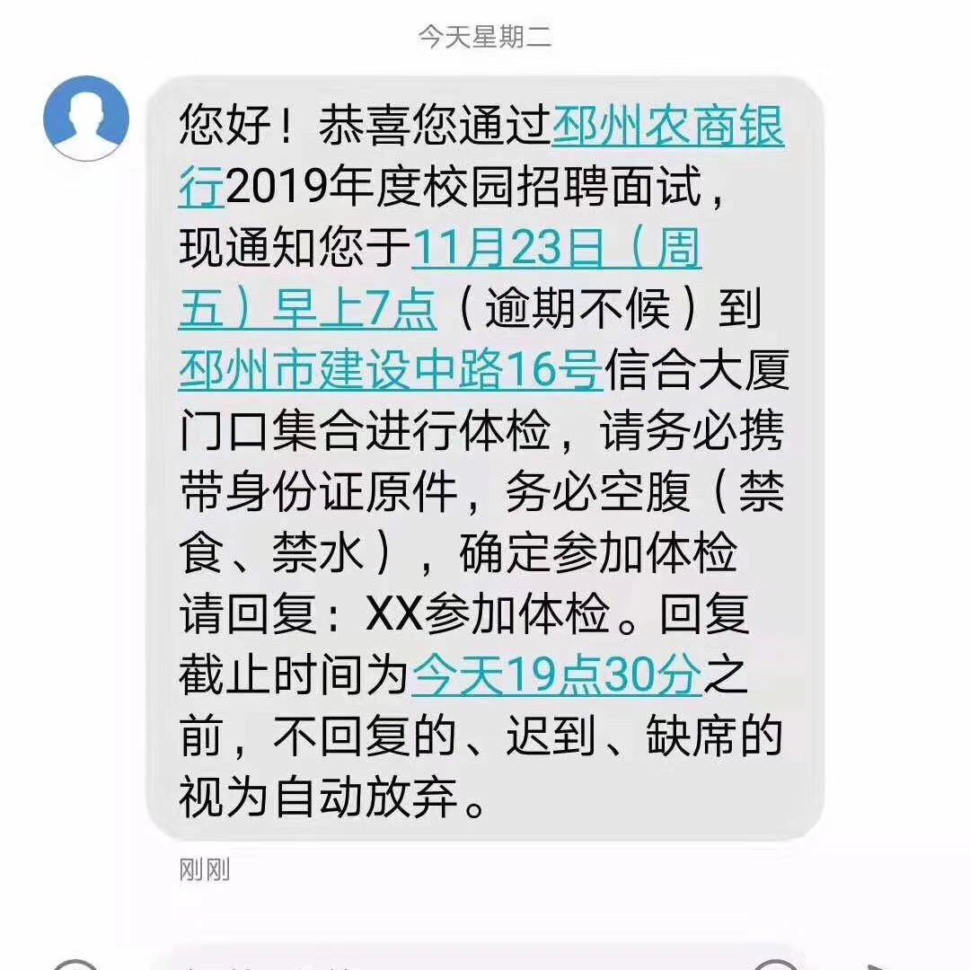 [江蘇]2019年邳州農(nóng)商銀行校園招聘體檢通知