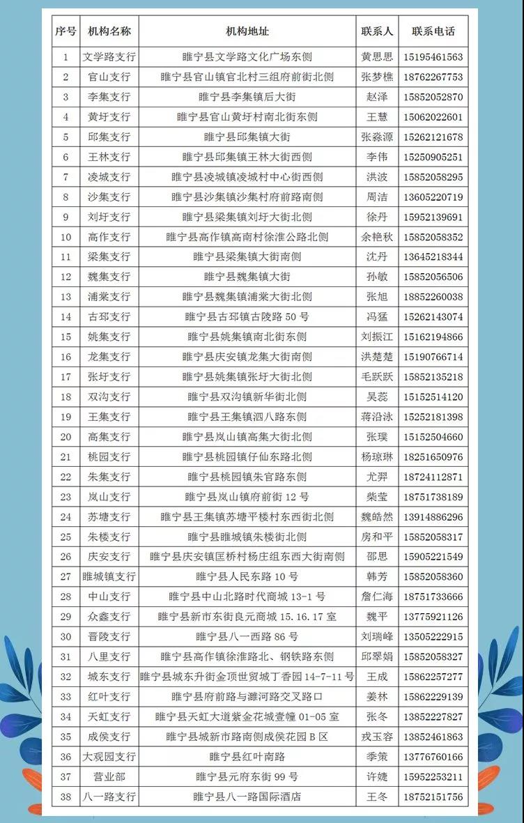 實(shí)踐網(wǎng)點(diǎn)地址及聯(lián)系方式一覽表