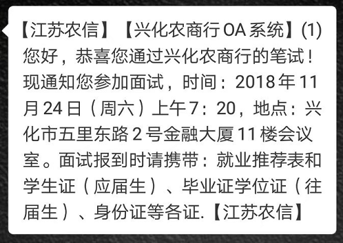 [江蘇]2019年興化農商銀行校園招聘面試通知