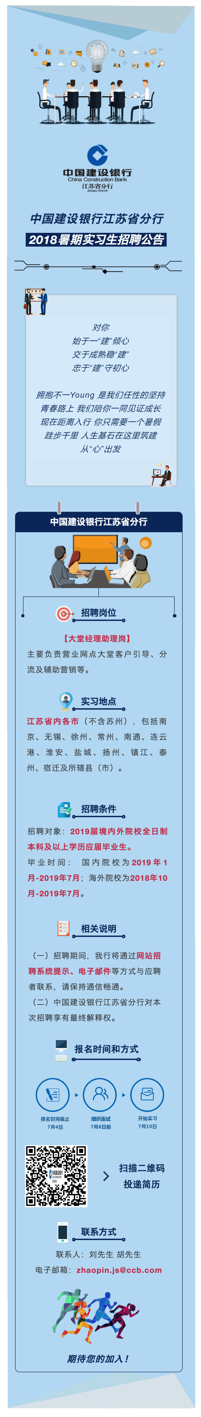 主頁 > 國家銀行招聘 > 中國建設銀行招聘 > [江蘇]2018年中國建設銀行江蘇省分行暑期實習生招聘