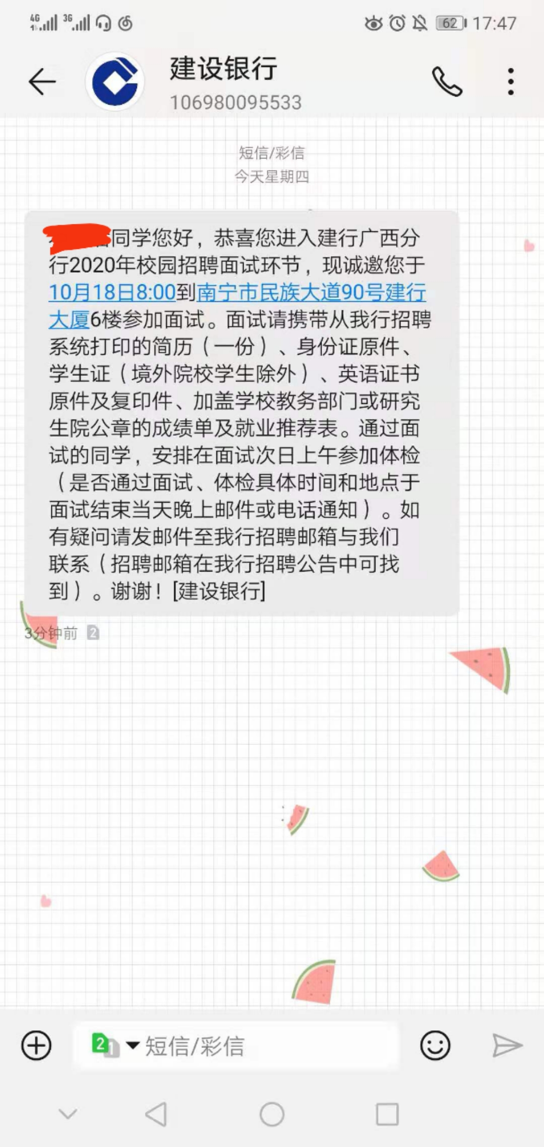 [廣西]2020建設(shè)銀行廣西分行校園招聘面試通知