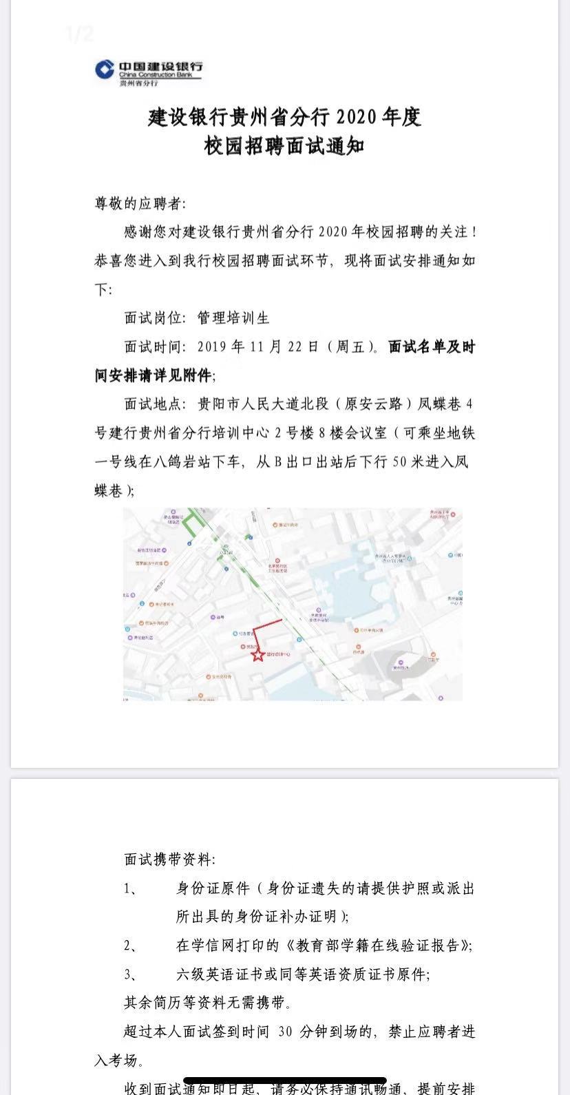 [貴州]2020中國建設銀行貴州分行校園招聘面試通知
