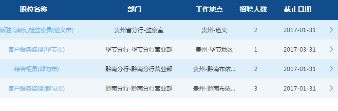 2017年交通銀行貴州分行招聘啟事已在銀行招聘網發布,報名時間截至2017年1月31日,詳情如下: