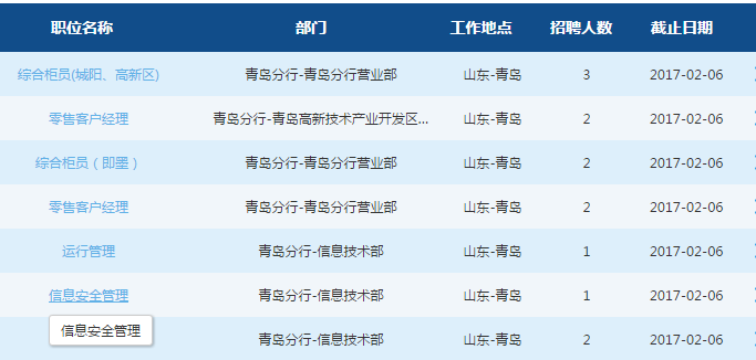 主頁 > 國家銀行招聘 > 交通銀行招聘 > [山東]2017年交通銀行青島分行招聘啟事