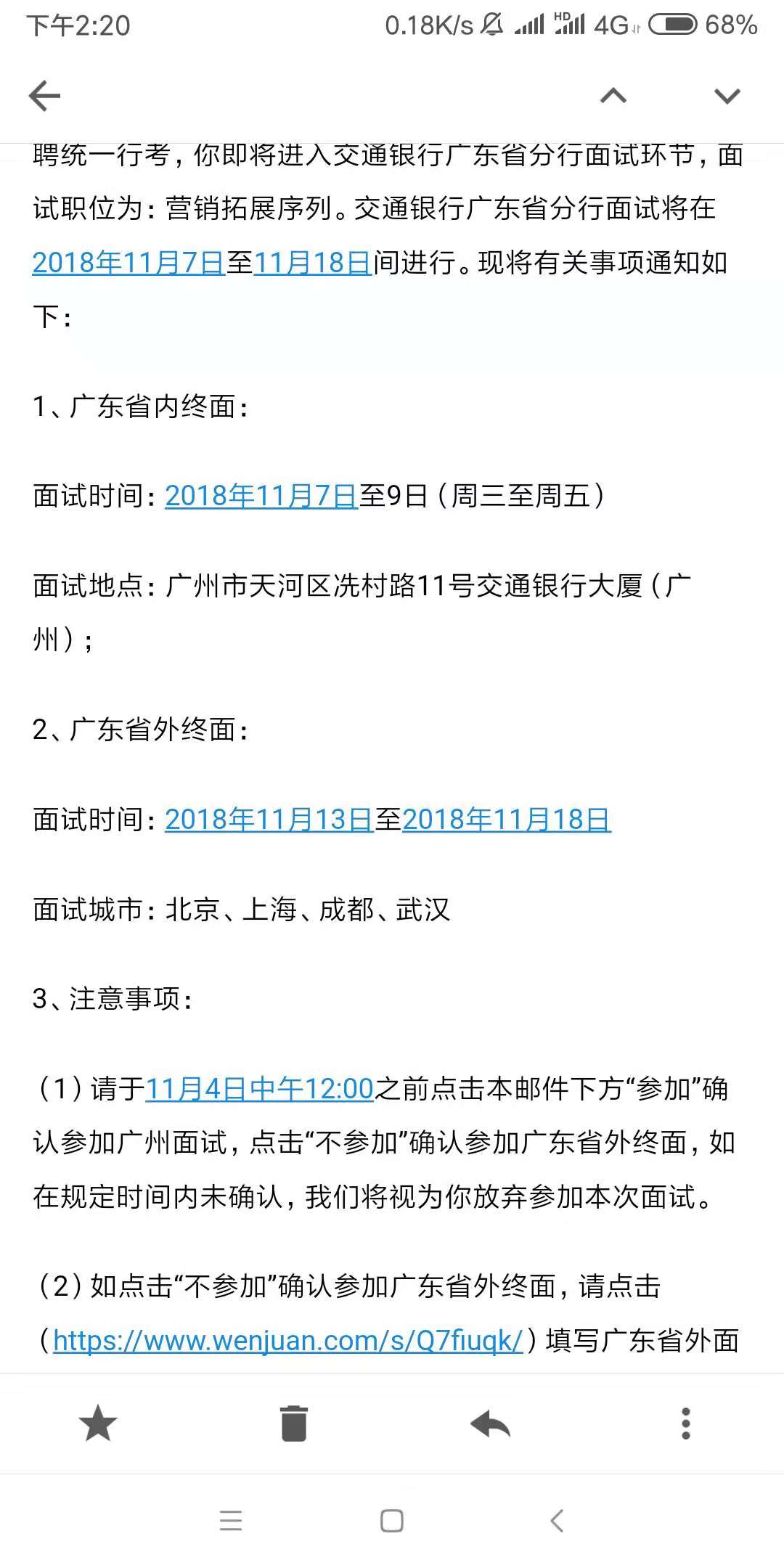 [廣東]2019年交通銀行廣東省分行校園招聘面試通知