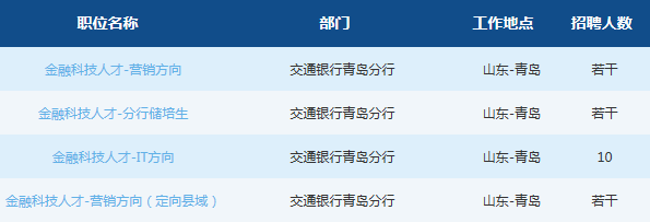 (6)對于財會類、管理類、語言類等非金融科技專業的本科應屆畢業生,原則上安排參加“2020年交通銀行雛鷹計劃”人才培養項目(赴金融服務中心培養鍛煉一年)。