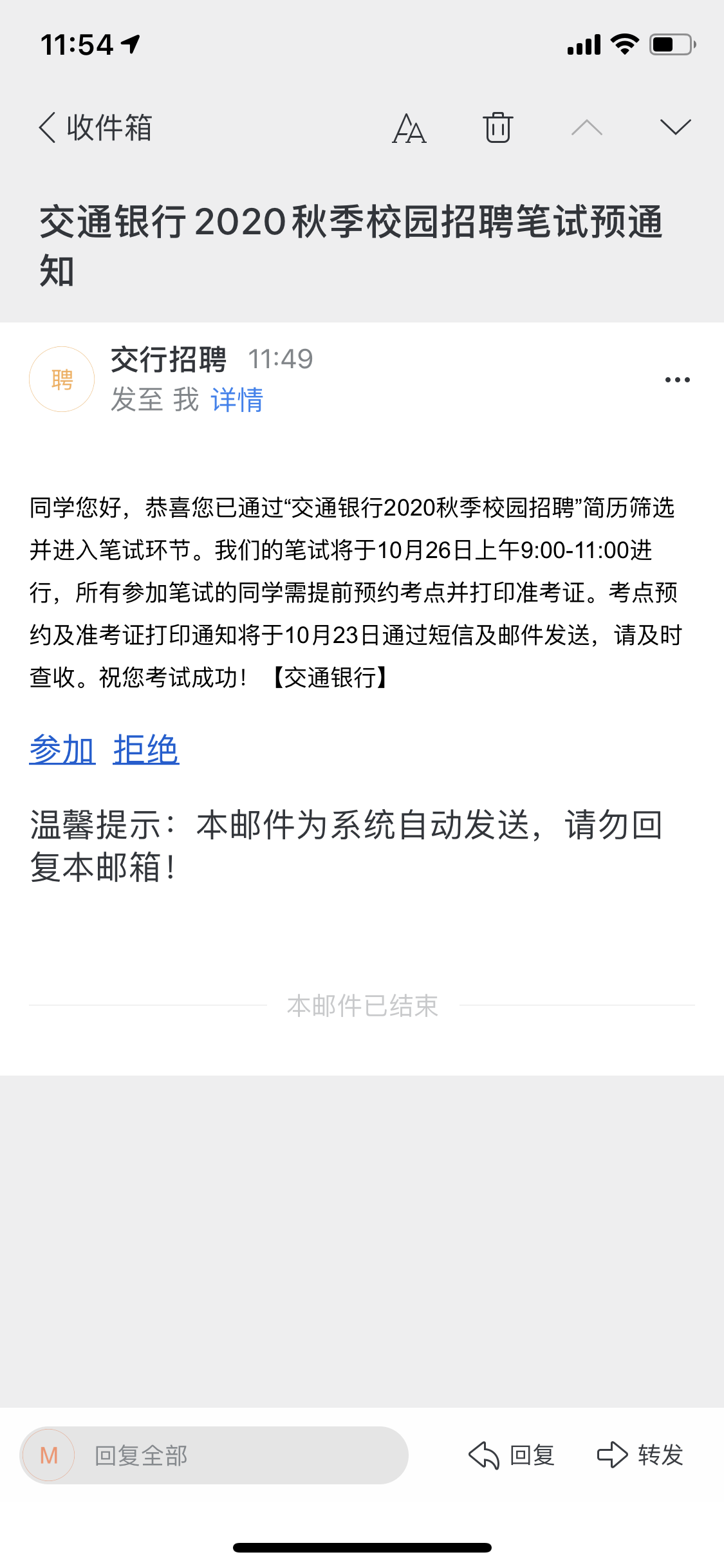 [全國]2020交通銀行秋季校園招聘筆試預通知