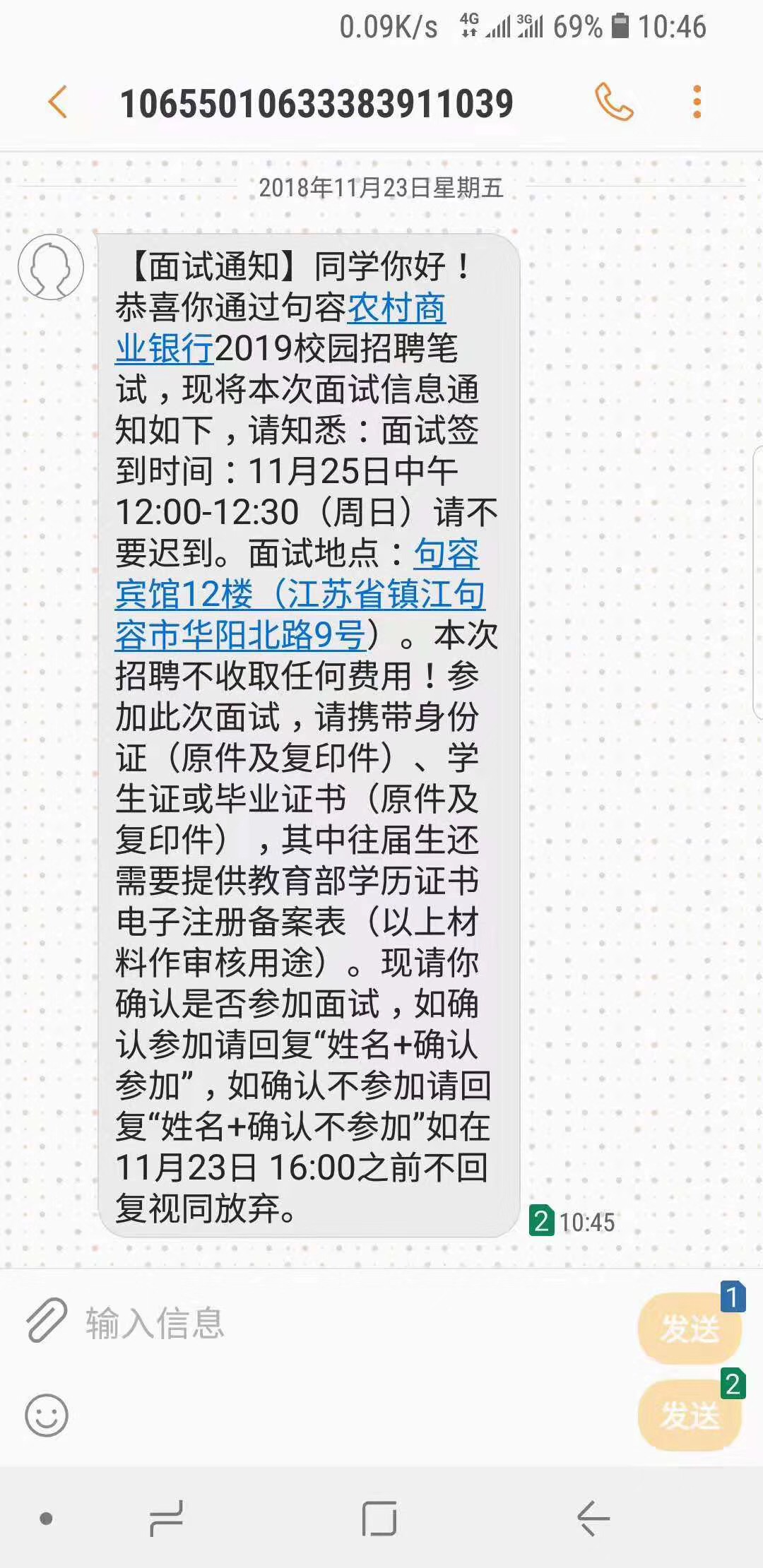 [江蘇]2019年句容農村商業銀行校園招聘面試通知