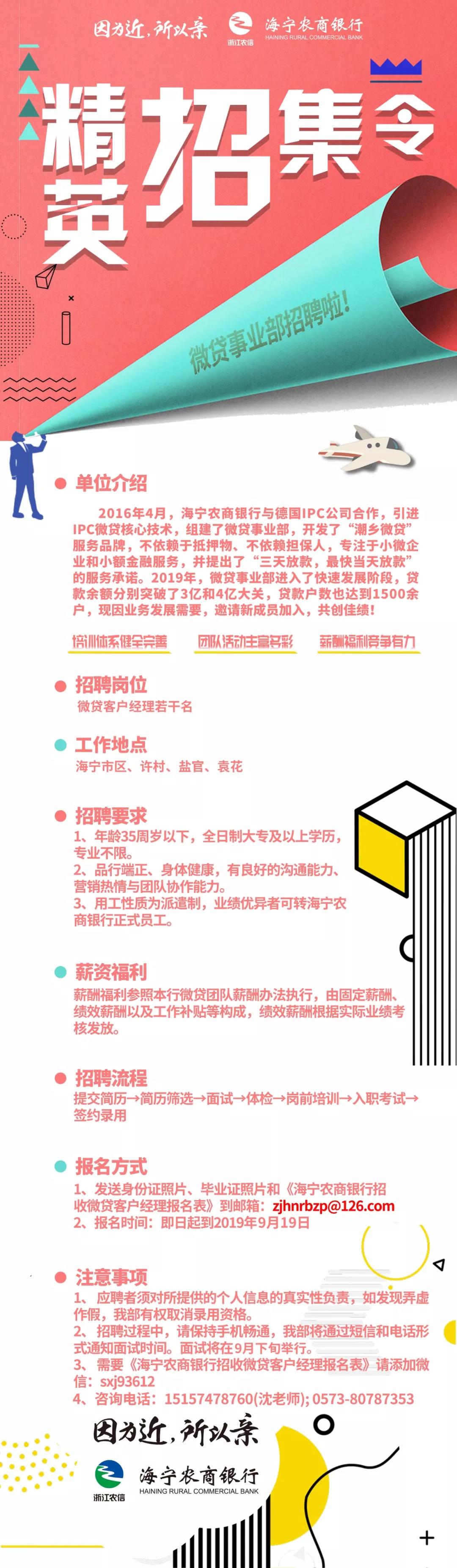 [浙江]2019年海寧農(nóng)商銀行社會(huì)招聘簡章