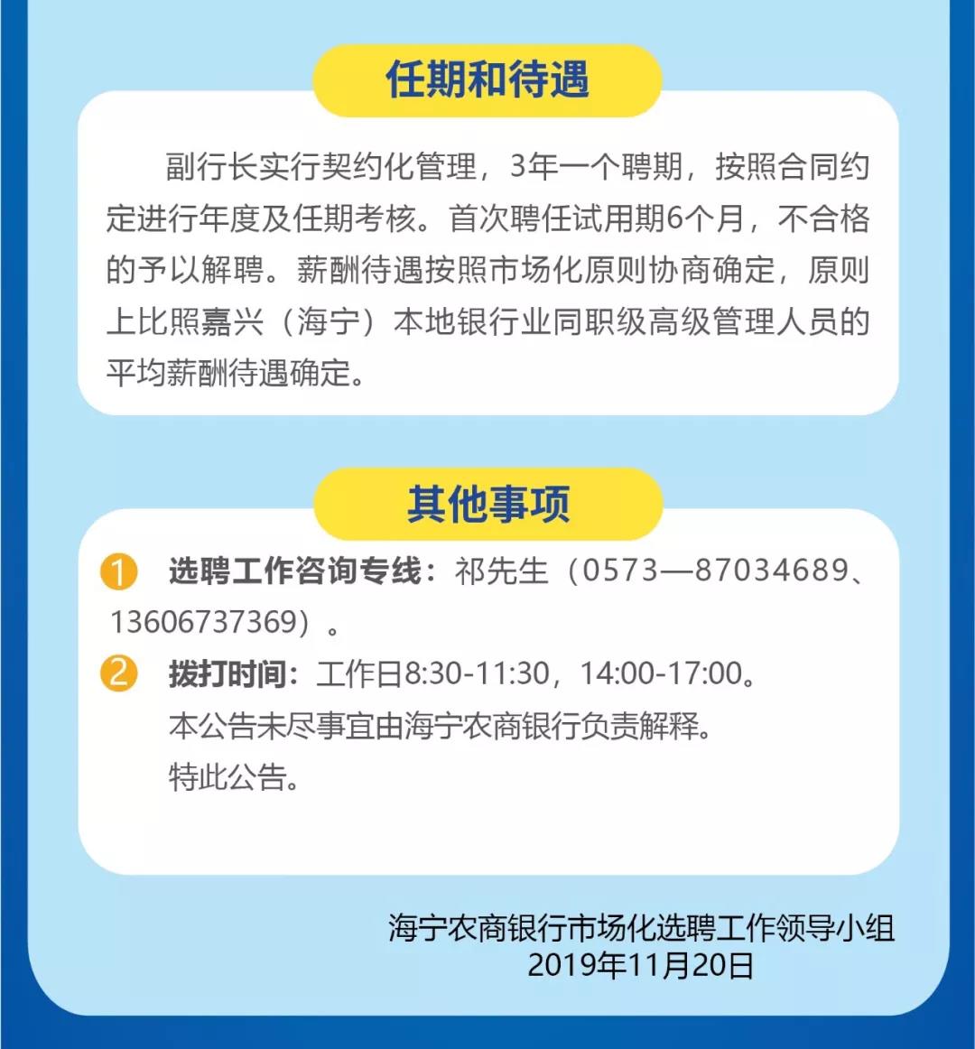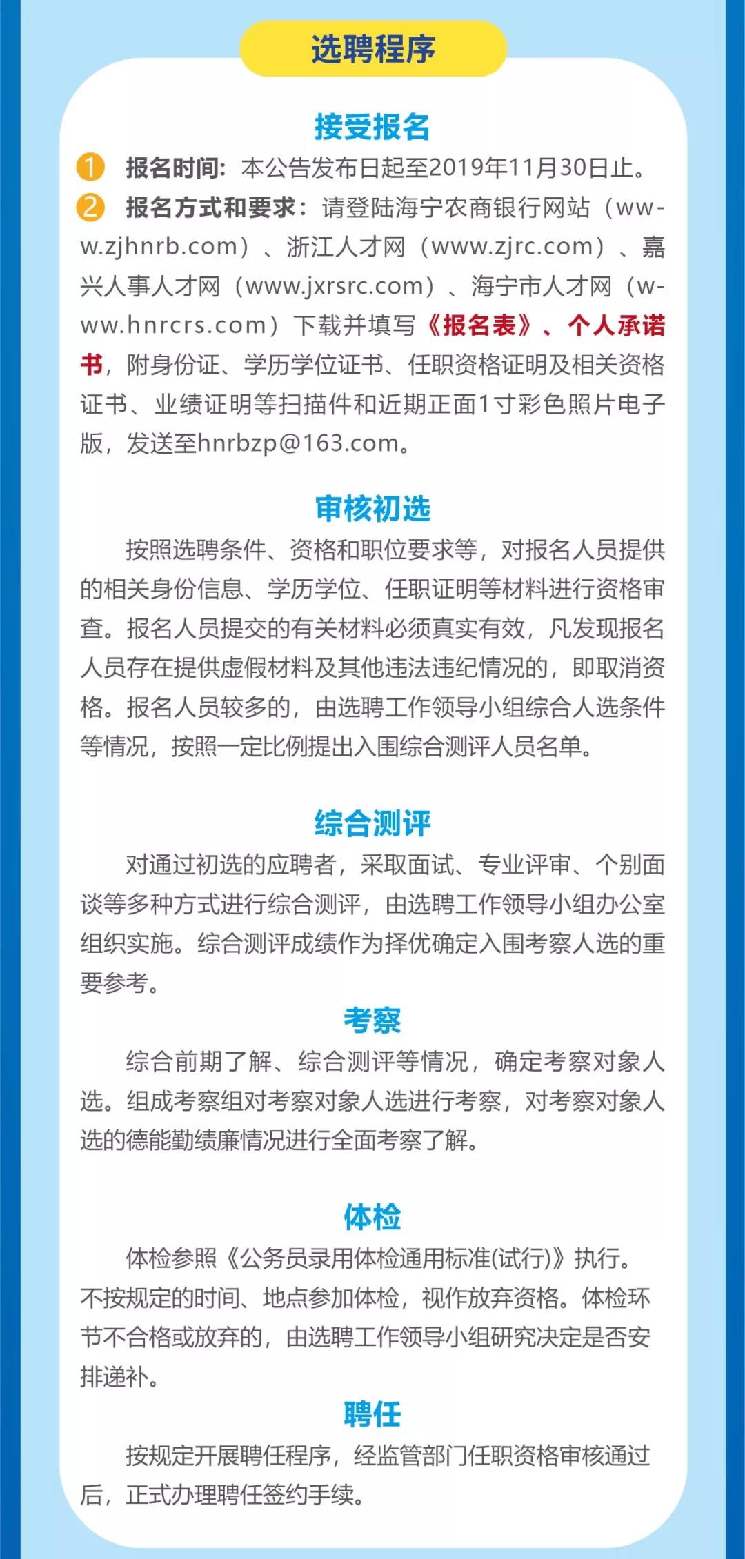 主頁 > 農村商業銀行招聘 > 海寧農商銀行招聘 > [浙江]2019年浙江海寧農商行市場化選聘副行長公告