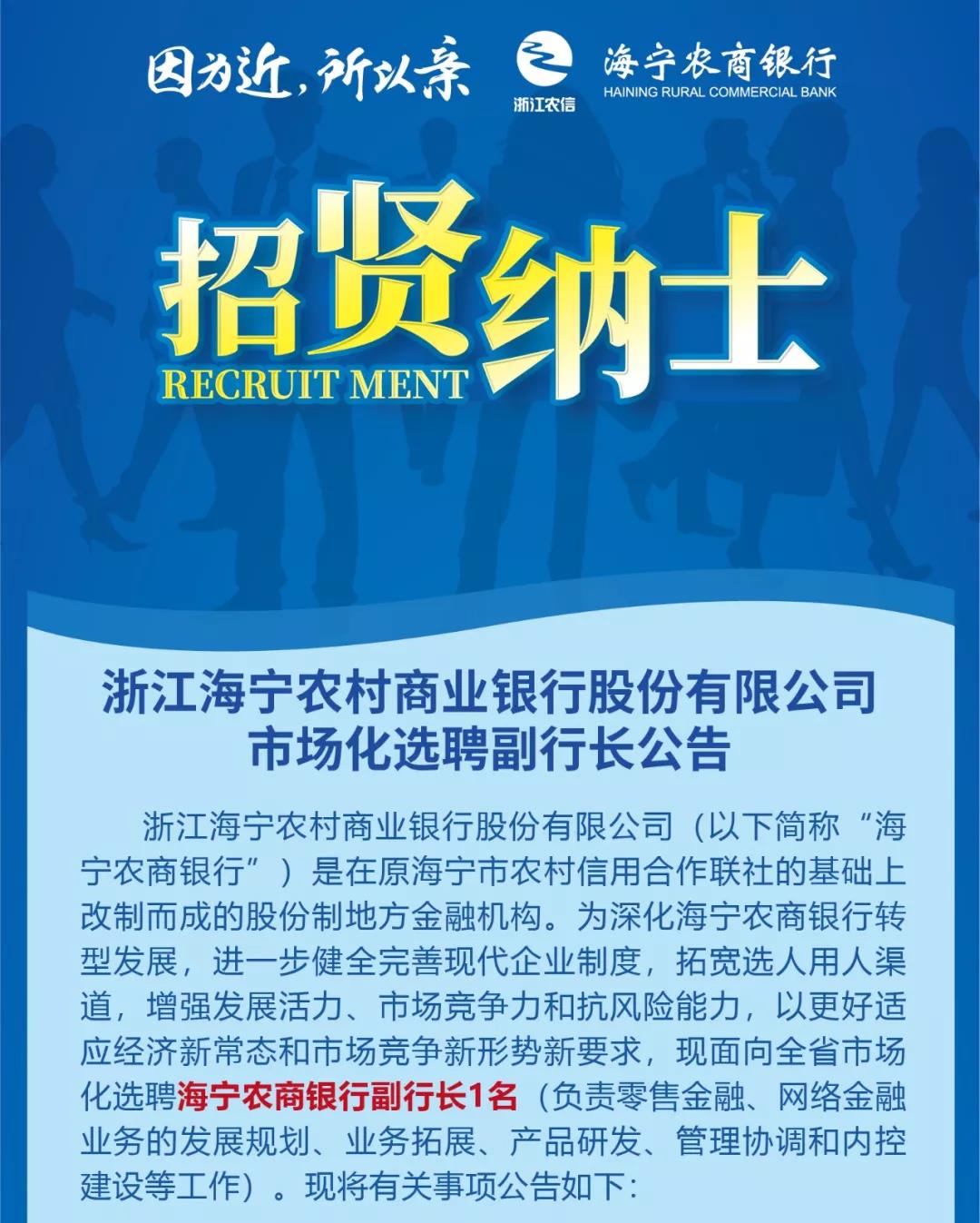 [浙江]2019年浙江海寧農商行市場化選聘副行長公告