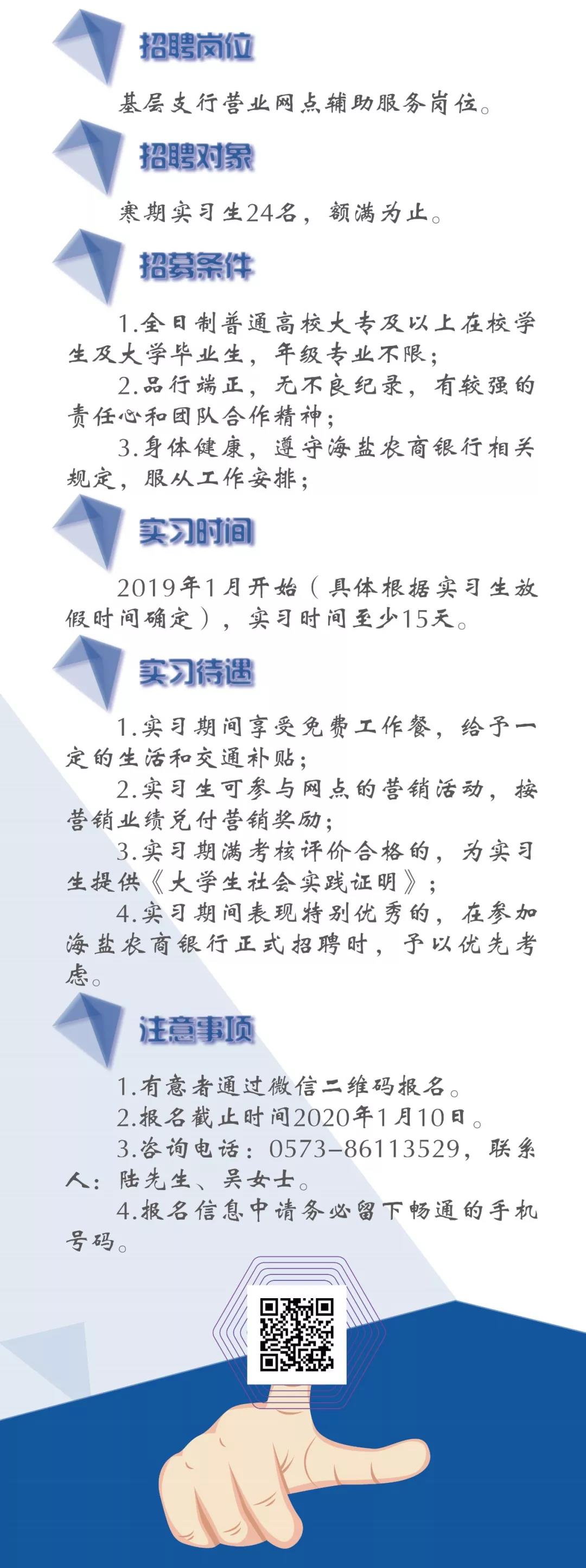 主頁 > 農(nóng)村商業(yè)銀行招聘 > 海鹽農(nóng)村商業(yè)銀行 > [浙江]2020年海鹽農(nóng)商銀大學(xué)生寒假社會實踐活動招募公告