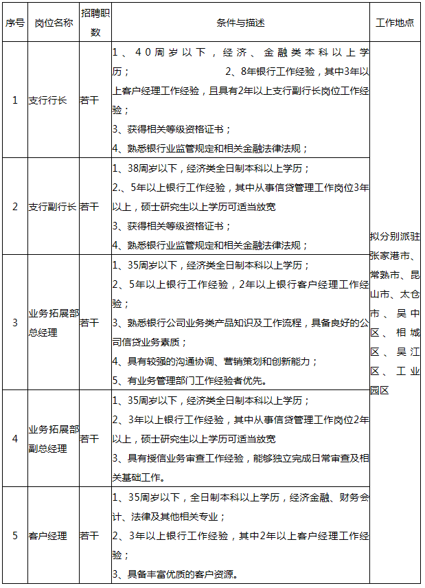 蘇州分行為江陰農商銀行第一批異地分行,作為隸屬于總行的一級分行,將立足于地方,致力蘇州地區的企業和居民提供更全面、更優質、更高效的金融服務。現因業務發展需要,誠邀金融同業精英加入我們,在奮進路中與您“同分享、共成長”!