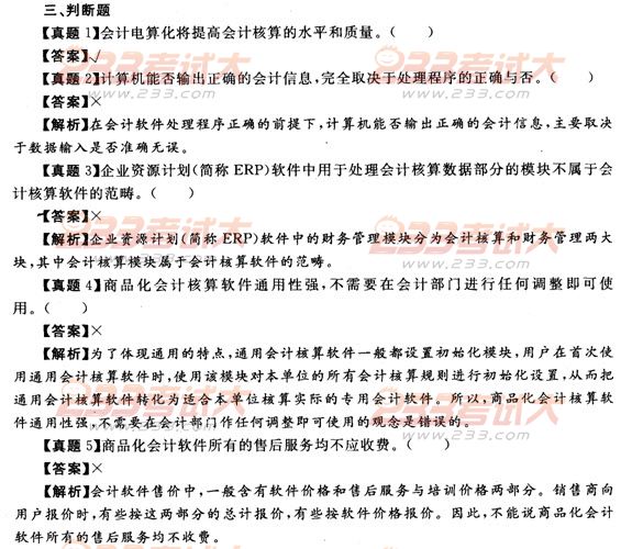 2012年會計證考試電算化第一章考點典型真題詳解(3)