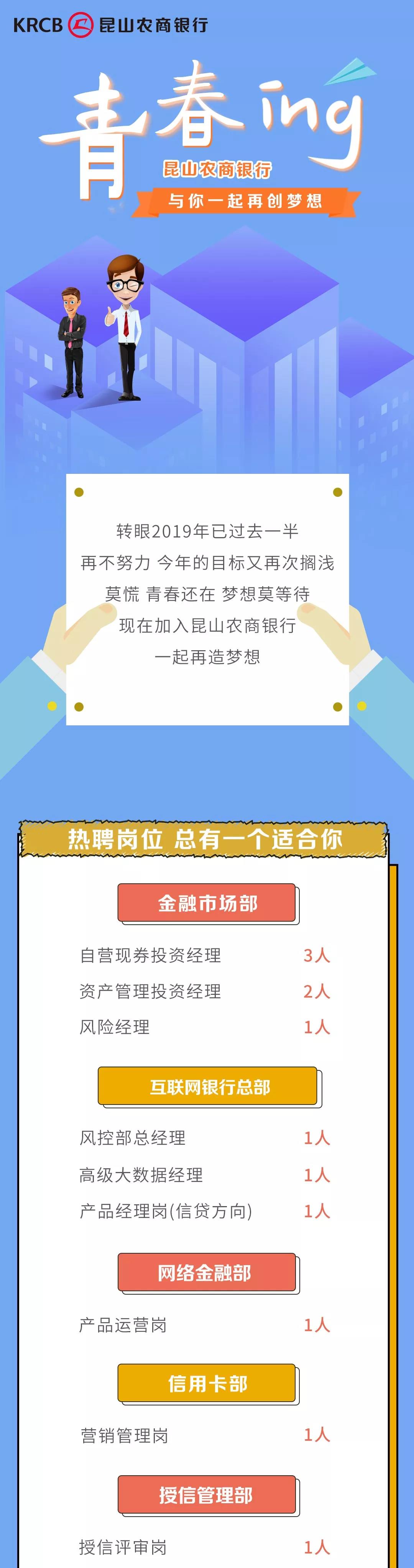 [江蘇]2019年昆山農(nóng)商銀行社會招聘公告(8.02)