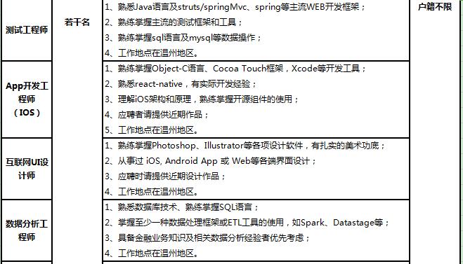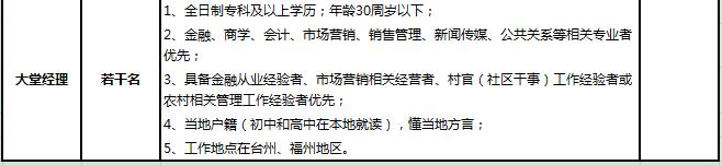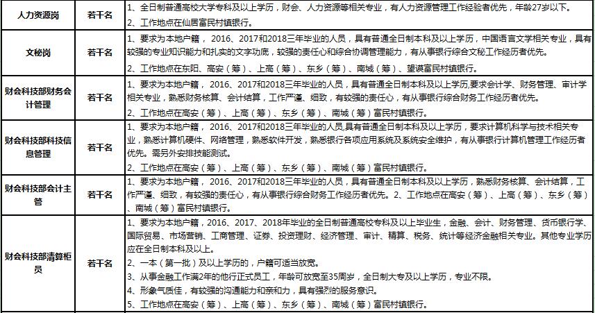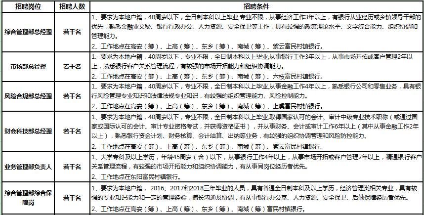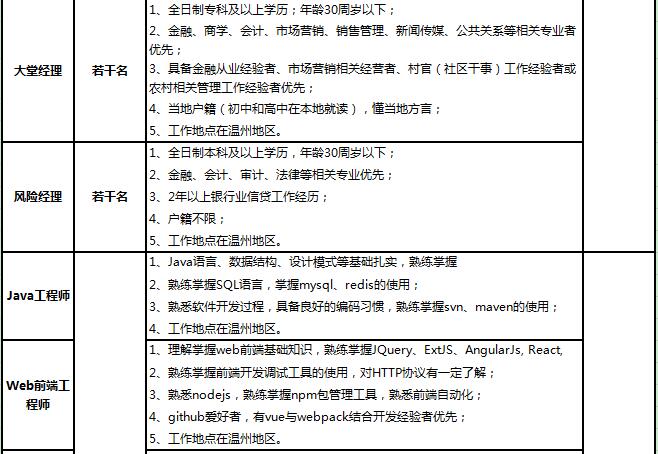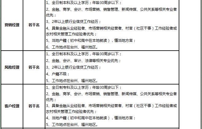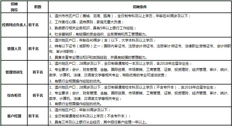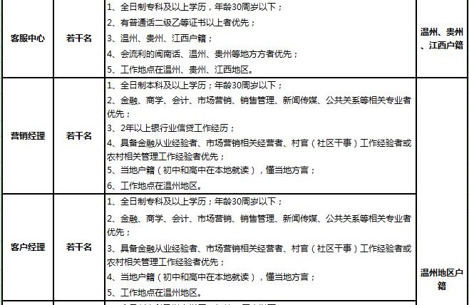 因全行業(yè)務發(fā)展需要,鹿城農(nóng)商銀行、鹿城農(nóng)商銀行主發(fā)起的富民村鎮(zhèn)銀行和鹿城農(nóng)商銀行旗下互聯(lián)網(wǎng)投融資平臺集中面向社會招聘,2018年度計劃擬招聘1000人左右,特開展鹿城農(nóng)商銀行 “千人招聘計劃”。具體如下: